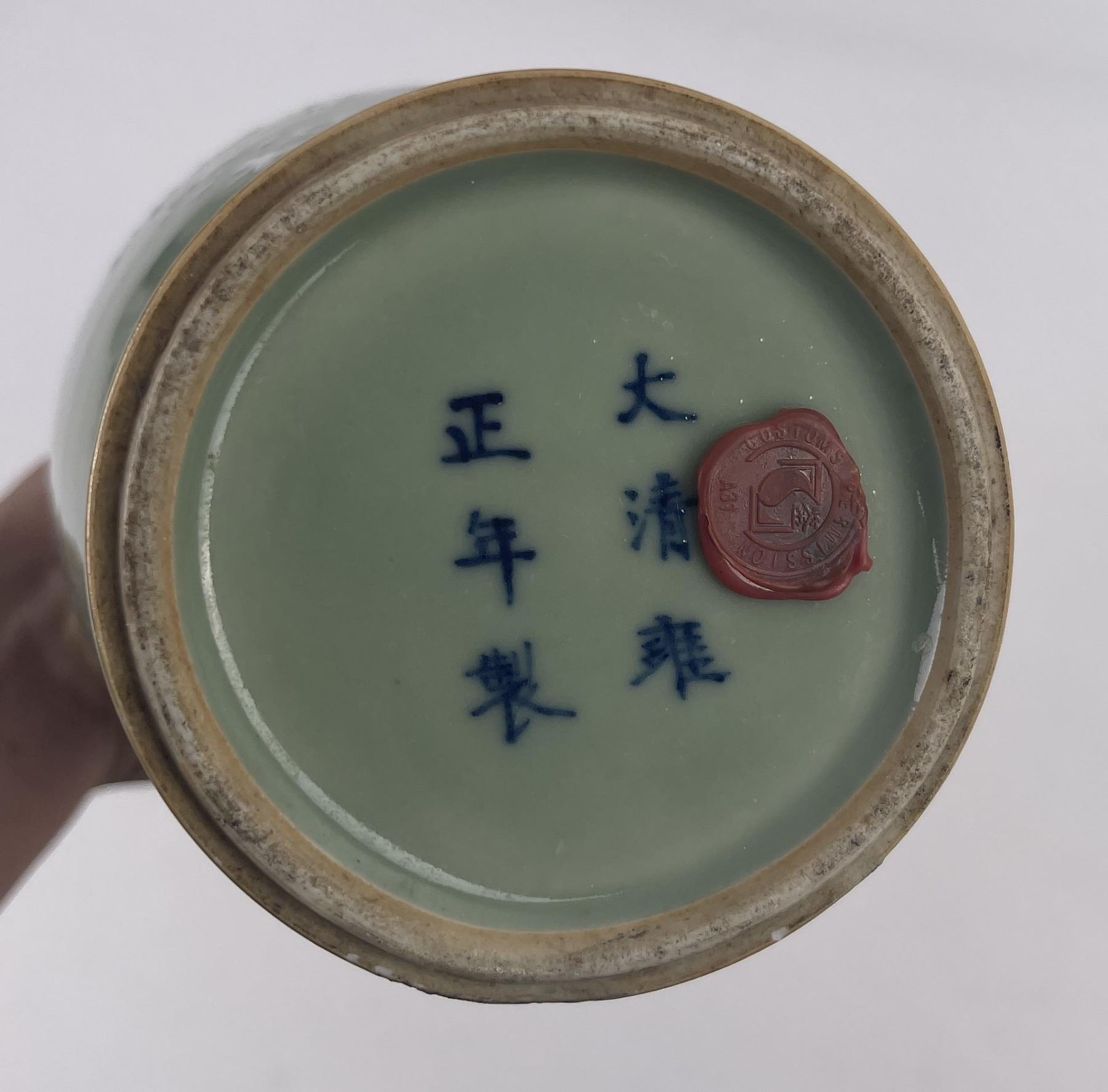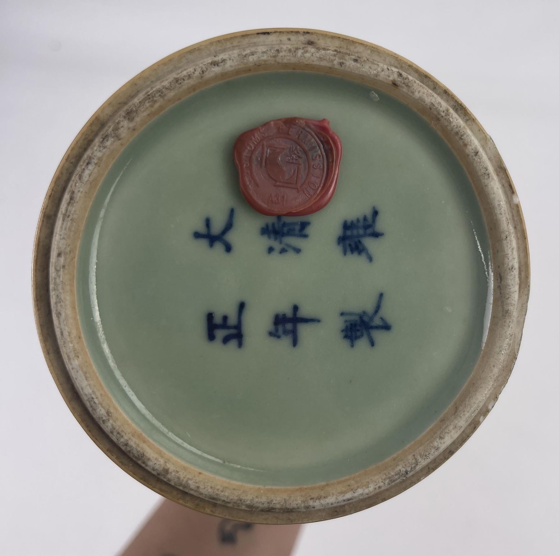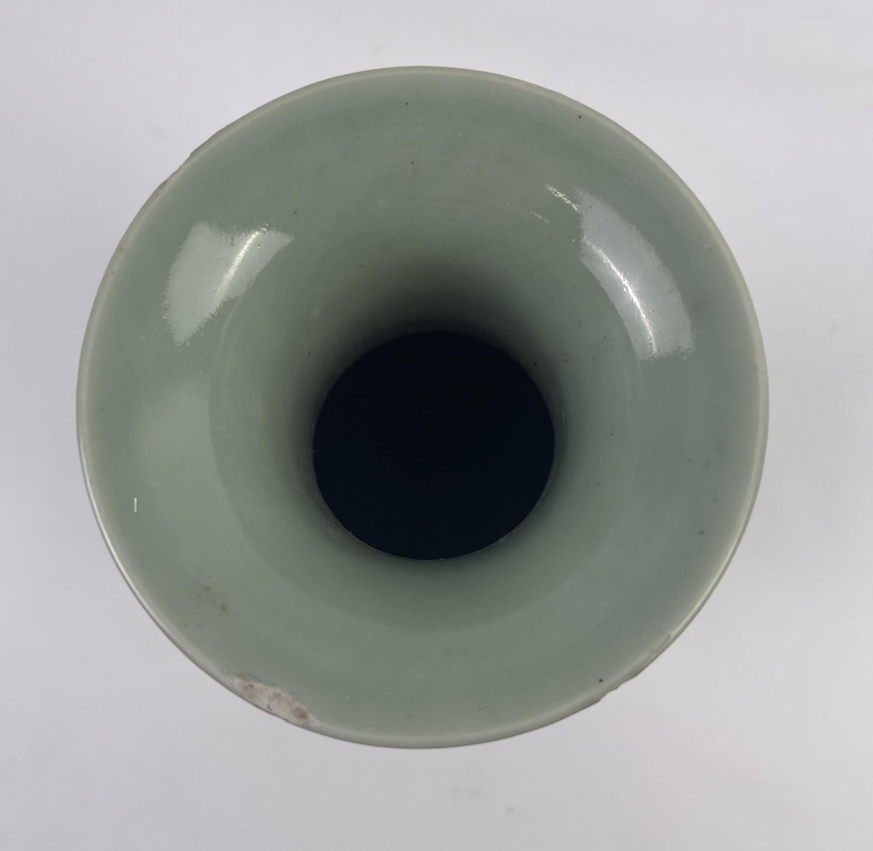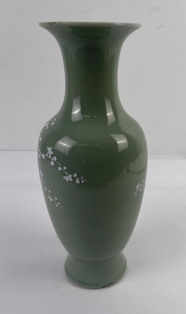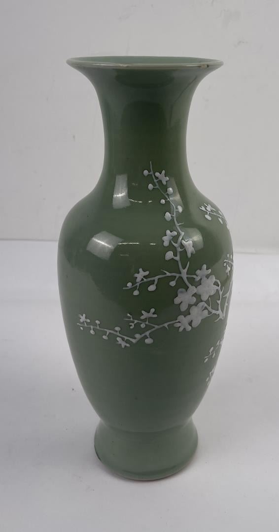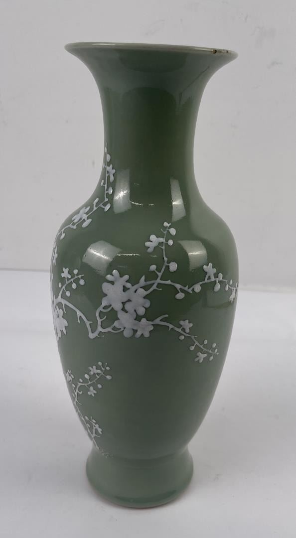 Nice vase. Signed as shown. HAs a few chips on the top lip. 13" tall.