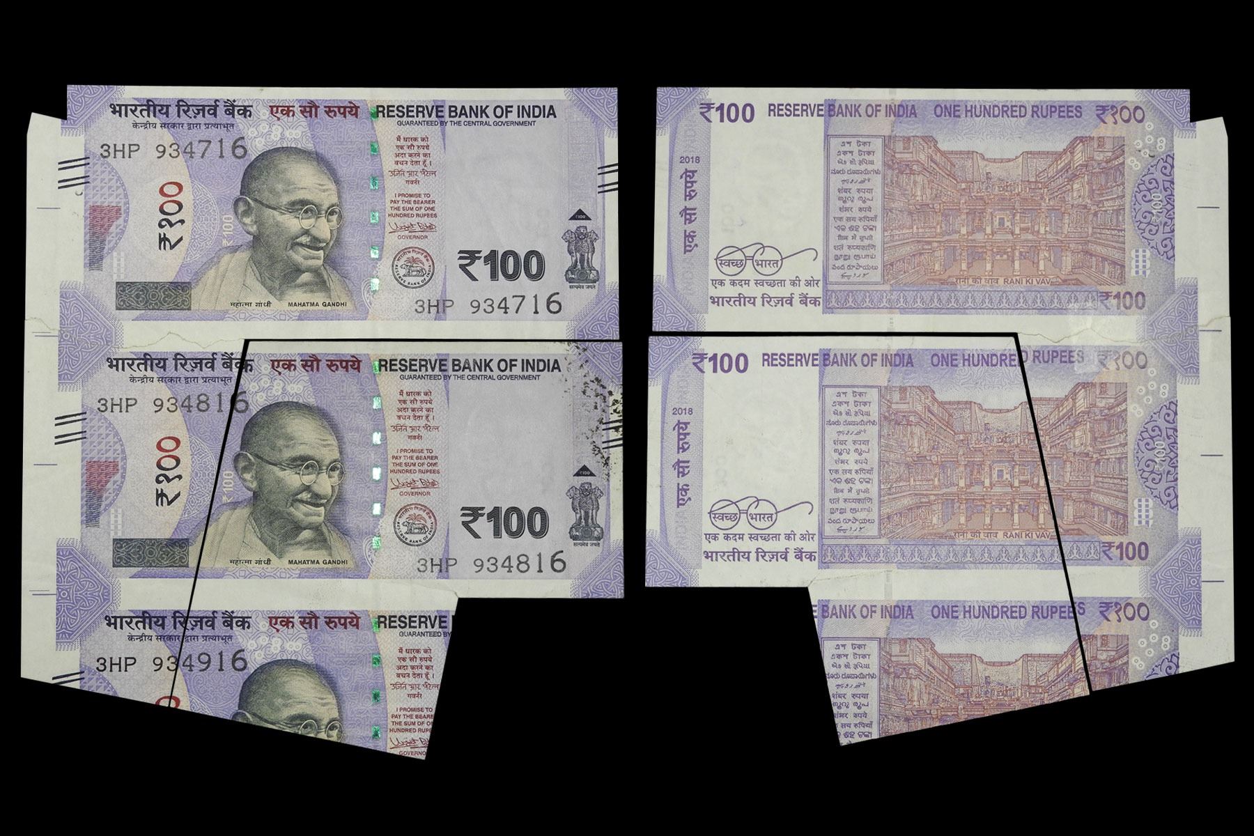 Reserve Bank of India, Hundred Rupees, 2018 Signed by Urjit Patel, (3HP 934716, 3HP 934816 and 3HP