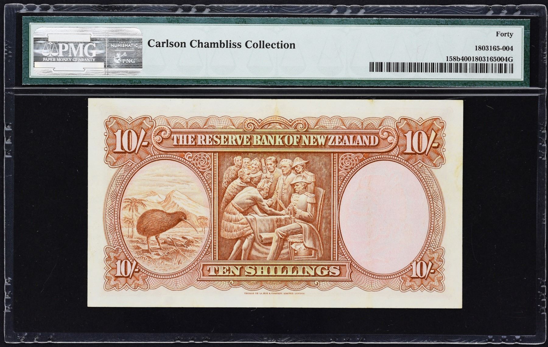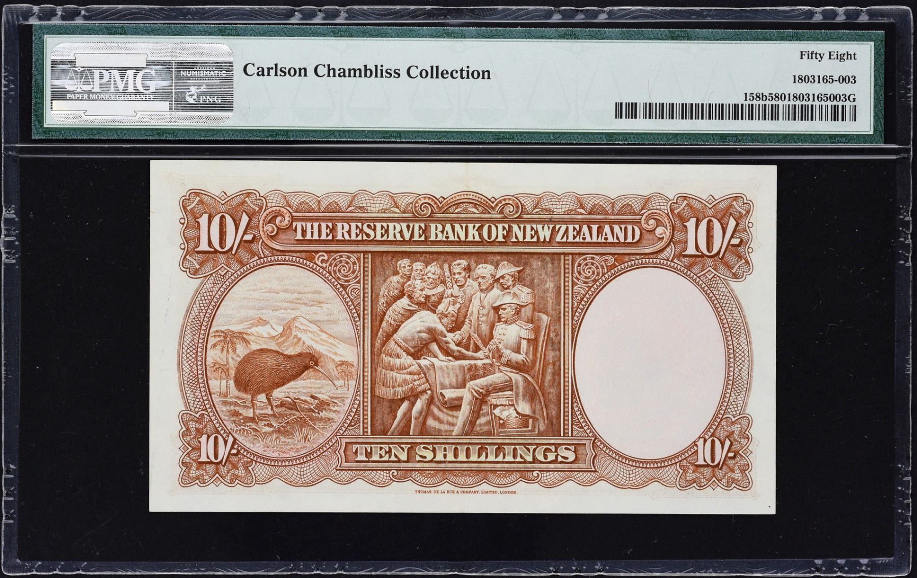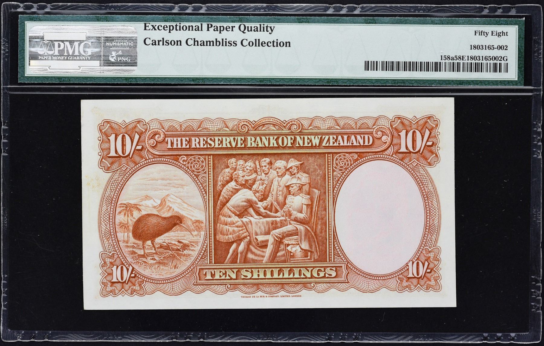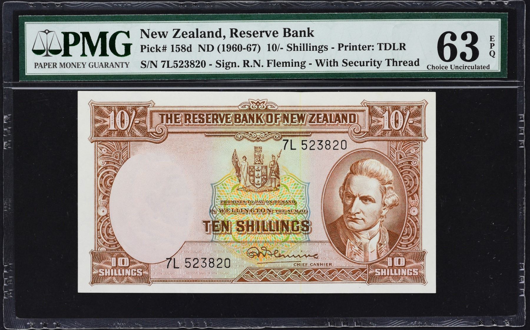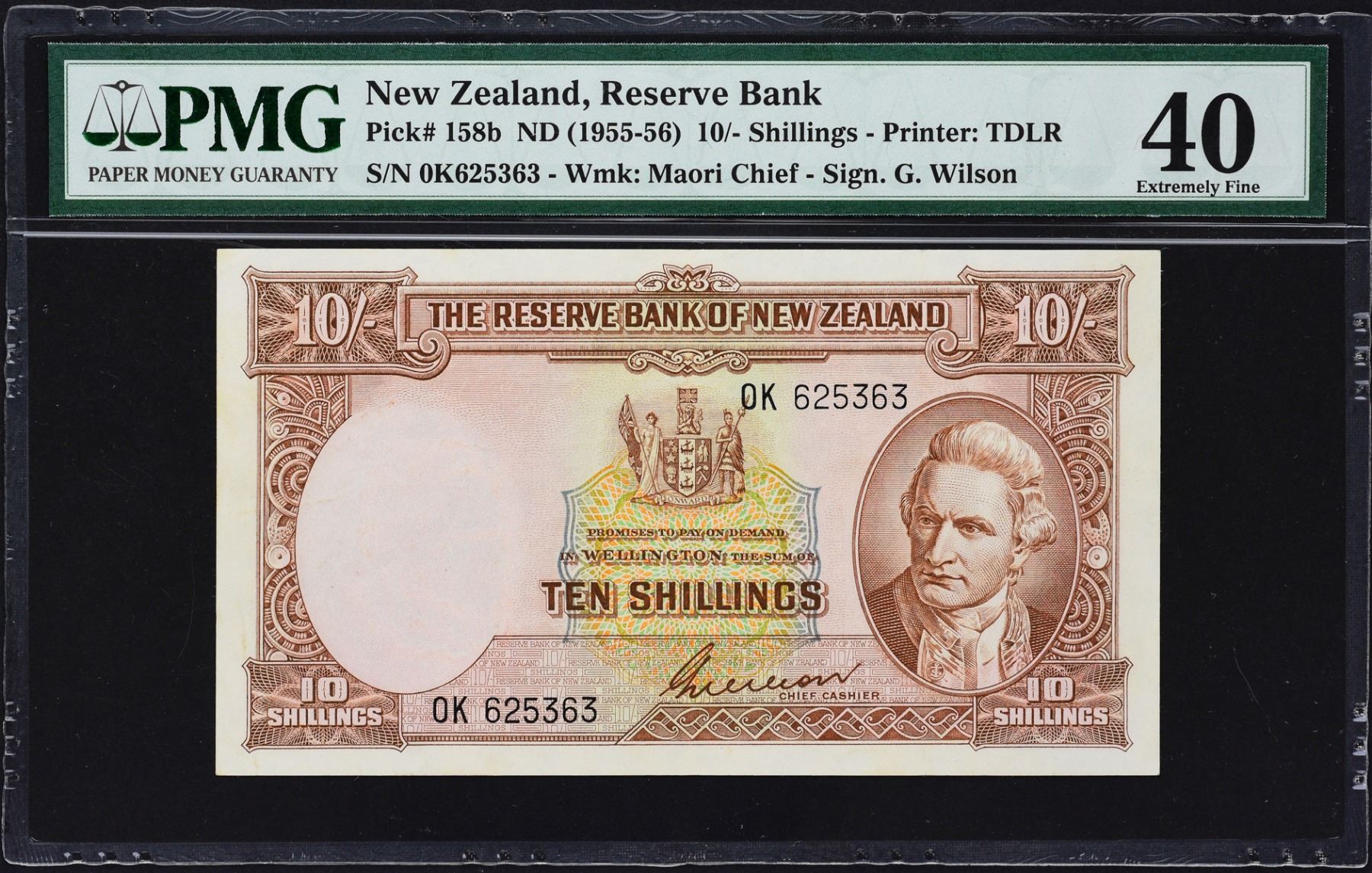 6 pieces in lot. A nearly complete variety set for this 10 Shillings design with the following; P-158 5/J block in About Uncirculated 55 EPQ; P-158a I/54(Dated) block in Choice About Uncirculated 58 EPQ; P-158b A/7 Block in Choice About Uncirculated 58; P-158b 0K block in Extremely Fine 40; P-158c 1E block in Choice Uncirculated 64 EPQ; P-158d 7L block in Choice Uncirculated 63 EPQ.