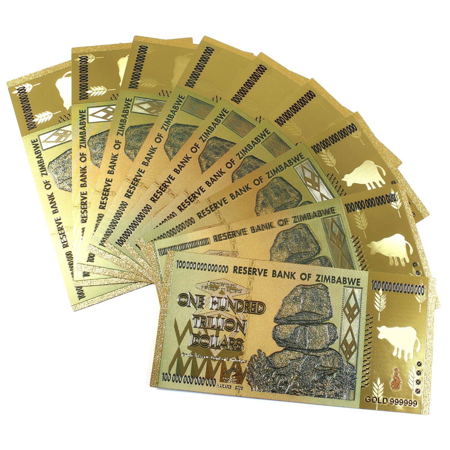 Reserve Bank of Zimbabwe 100 Trillion Dollar Gold Plated Novelty Notes. 9pcs