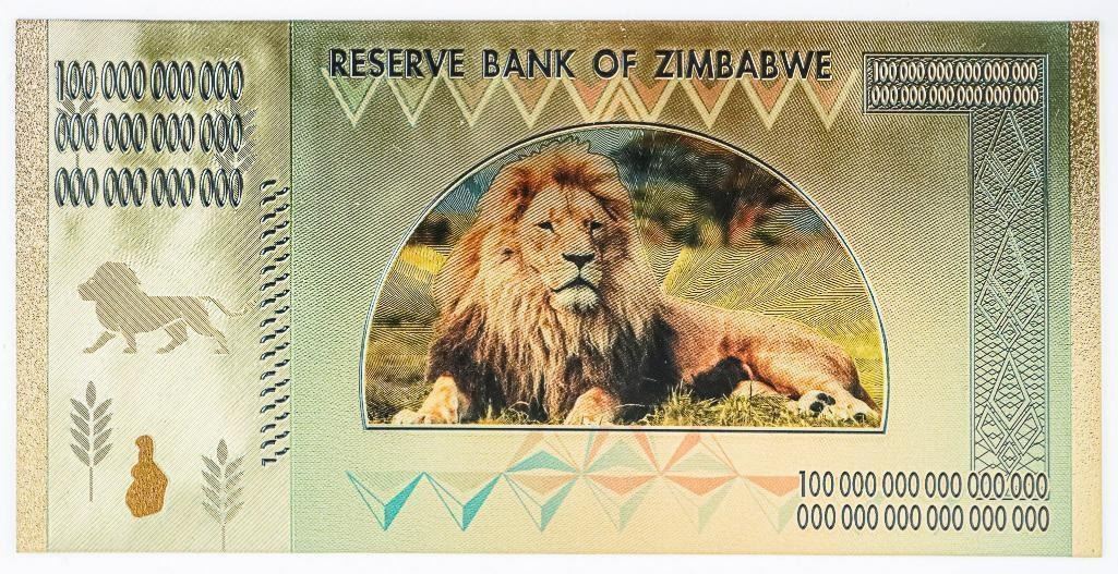 Reserve Bank of Zimbabwe Special 24kt Gold Gilded Commemorative Issue 100000000000 Note on Giclee Art Card Display -Victoria Falls, Zimbabwe