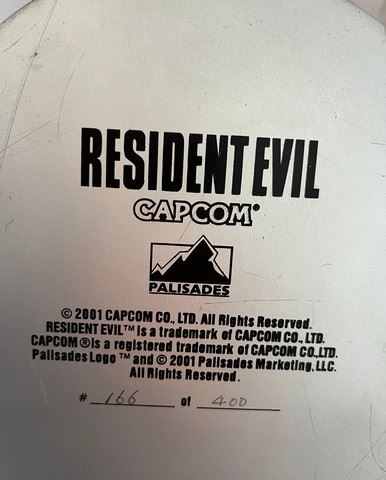 Resident Evil 2001 Video Game Zombie collectible statue #166/400. Licensed by Capcom. This is a rare and limited edition collectible statue of a zombie from the 2001 video game Resident Evil. The statue is hand painted with meticulous detail, and it features exposed muscle tissue and rotting flesh. It is in good condition overall, but it does have some minor damage. The damage is hard to see unless you look closely. Made of resin. The statue was on display in the production offices of the films, so it is not in the original box. (12"x 6").
