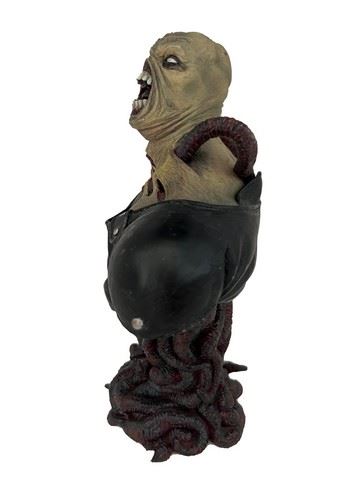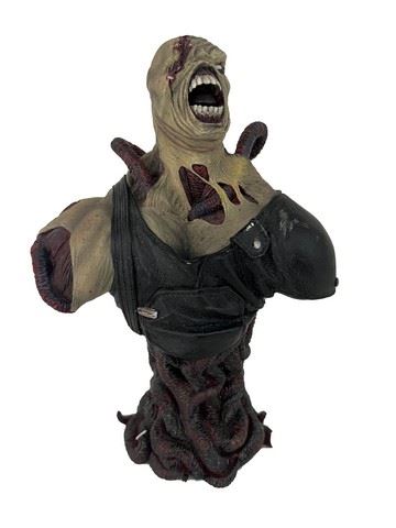 Resident Evil 2001 Video Game Zombie collectible statue #254/3500. Licensed by Capcom. Statue is hand painted with meticulous detail of the zombie like features. The statue is a great likeness of the zombies from the Resident Evil video game series. It is incredibly detailed, with exposed muscle tissue and rotting flesh. Rotting flesh is damaged in two points at the base. This was on display in the production office. Made of resin. No box. (7"x5")