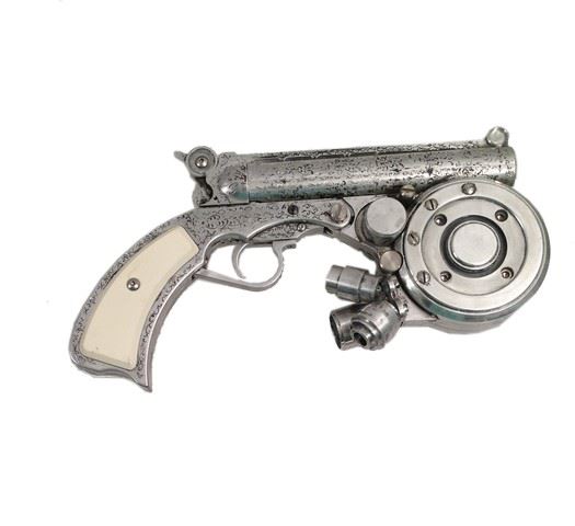 Alice (Milla Jovovich) screen used, hero, metal grappling hook gun. Includes barrel extension, hook with spikes and wire and a stunt spike (rubber). (Gun Approx. 10") This gun was attached magnetically to Alice's back throughout the film. Ada Wong also used it on screen.