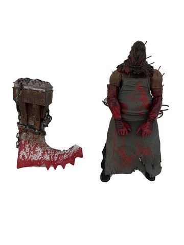 Resident Evil 2009 Capcom Neca Executioner Majini action figure. Featuring realistic paint and needle detail as well as the nail and hook weapons which are part of this gruesome character's costume. Comes with signature axe weapon accessory. It is an 8-inch action figure based on the Executioner Majini enemy from the video game Resident Evil 5. The figure is made of high-quality plastic and features realistic detail, including blood splatter and a weathered axe. It is fully poseable and comes with a base.
