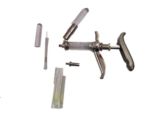 Rain's (Michelle Rodriguez) screen used, hero syringe. Seen on screen in the final battle scene in Moscow. Also comes with extra replacement parts. (Approx. 6.5"L)