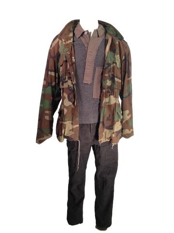 Tony (Ofilio Portillo) screen worn, hero, camo military jacket(M), and a "Rogue" charcoal chord pants(34). Includes a "Diesel" grey knit sweater(M).