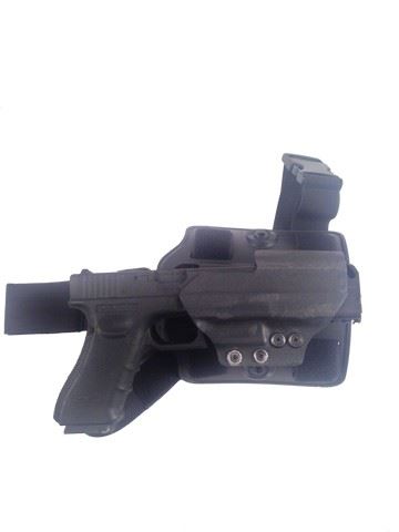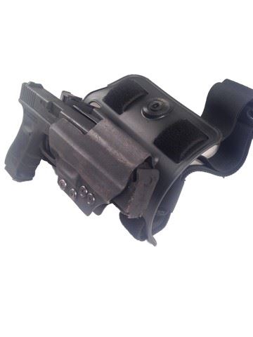 Commander Li hero leg holster with attached soft Glock gun (approx. 11" x6").