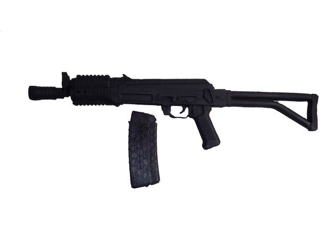 Dr. Isaacs (Iain Glen) hero, screen used M14 (soft) rubber gun with blocks, scope holder & magazine clip (approx. 30" x 8")