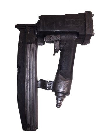 Dr.Isaacs' (Iain Glen) screen used, hero, production distressed nail gun (metal) (Approx. 10''x14'')