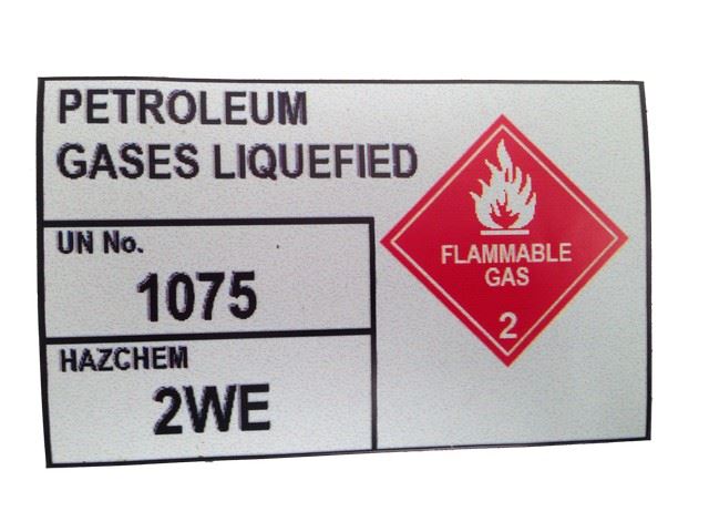 "Petroleum Gases Liquefied" flammable gas sticker, unused. (Approx. 5.5" x 3")