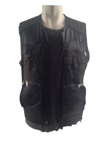Michael's (Fraser James) hero 'G-Star' jacket (size L),' Harley Davidson' Motorcycle Cargo Vest (size L), 'G-Star' pants (size 34) brown leather belt, 'Alternative' shirt (no size) and boots. Costume is heavily distressed from production and includes 2 wardrobe tags.