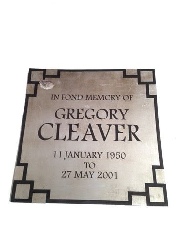 " In Loving Memory of Gregory Cleaver, 11 January 1950 to 27 May 2001" screen used, flexi glass sign (Approx. 16" x 16")