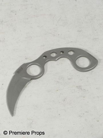 Alice (Milla Jovovich) silver metal curved dull blade with two finger holes and two finger grips 'United Cutlery' stainless steel knife. (approx.. 7" long)