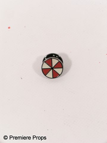 Red and white with silver backing 'Umbrella' pin. (approx. 1/2" diameter)