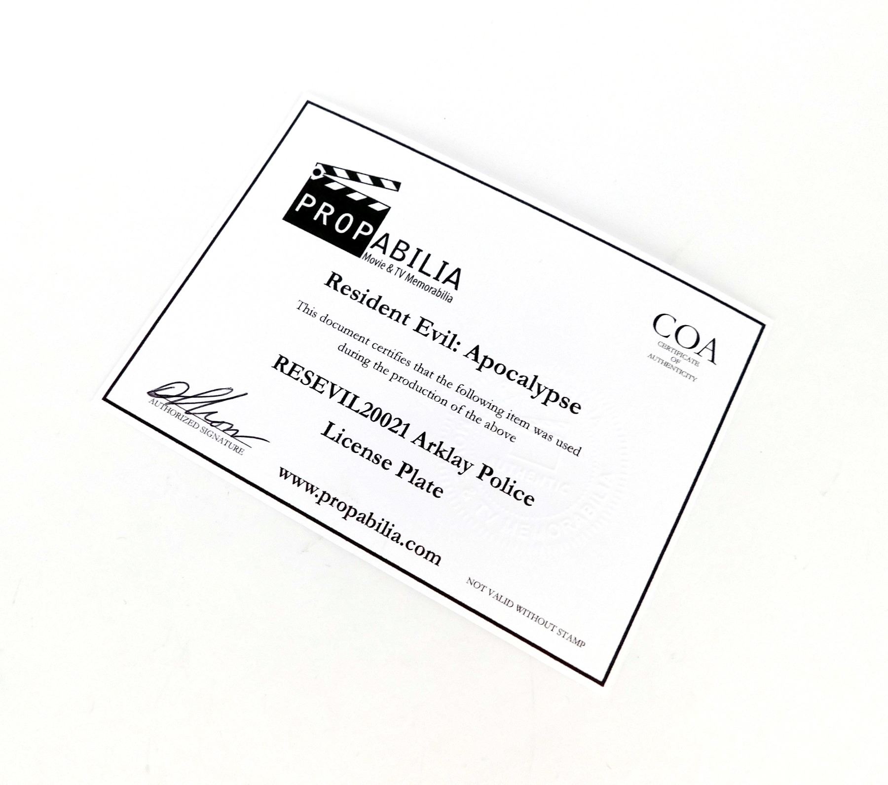 This license plate was acquired by the production for use in 'Resident Evil Apocalypse' (Constantin Film, 2004).