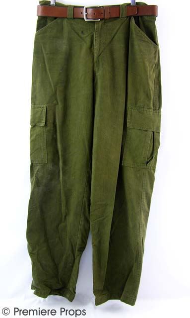 Resident Evil: Extinction (2007) - Dr. Isaacs' (Iain Glen) screen worn, green "Aigle" multi pocket zip vest with Umbrella pin (*Dark stain on left shoulder) (Inside reads "Dr. Isaac #1") (size L). Brown "Murano" L/S button up shirt (size M). Green cargo pants (*Some dark stains) (Inside reads " Dr. Isaacs 1"). Brown belt with silver buckle (Inside reads "Dr. Isaacs"). Brown leather "Wolverine" boots (*Slightly bloody / Distressed) (Inside reads "Dr. Isaac") (size 10.5). (Includes wardrobe tag / screen worn).