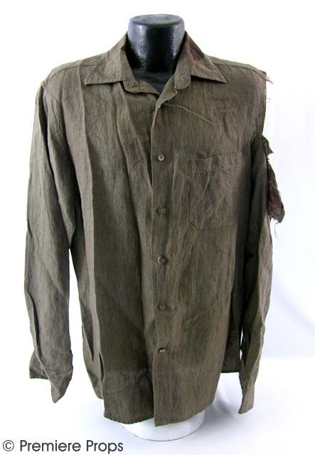 Resident Evil Extinction - Dr. Isaacs' (Iain Glen) torn and bloody brown "Murano" L/S button up shirt. Torn at left shoulder/sleeve (size M) (screen worn)