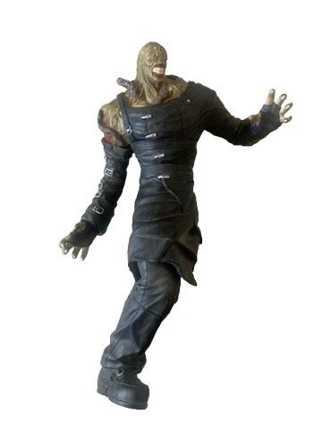 Resident Evil Nemesis Statue from 2016. Officially licensed and stands at 13" tall. Missing one show and weapons as well as the stand. Made of hard plastic, features realistically hand painted details of stapled eyes, red veins running through the body and gum in the mouth. Nemesis, named after the goddess of retribution from Greek mythology, first appears in Resident Evil 3: Nemesis. The character is the product of years of research and was created by the Umbrella Corp. His goal is to find and kill members of the S.T. A.R.S. police team and assistance to the U.B.S.S. punitive squad "Omega". On display at the film production offices.