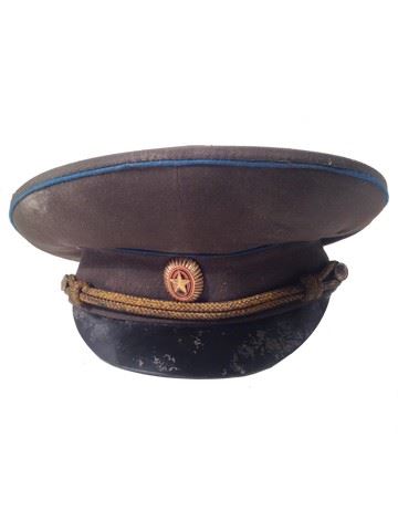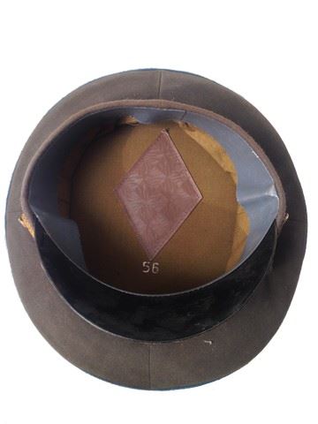 Screen used, distressed olive aviation hat with blue lining, star emblem, and blank patch inside. Comes with one pair of black leather gloves. "56" written inside of hat.
