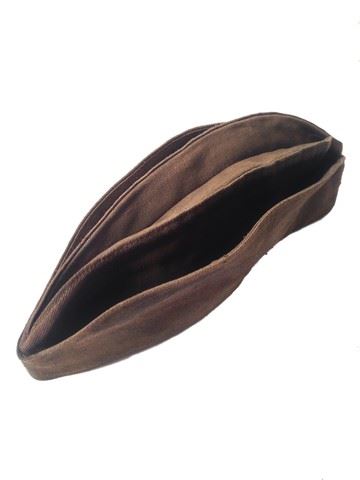 Screen used, distressed brown envelope cap with black rubber gloves. "56" stamped inside of hat.