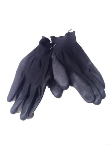 Screen used, distressed brown envelope cap with black rubber gloves. "56" stamped inside of hat.