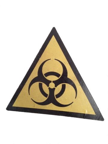 Biohazard symbol, screen used, cardboard sign. (Approx. 3.5" x 3.5" x 3.5")