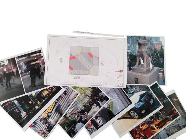 Resident Evil: Afterlife and Retribution Shibuya Scramble production rendering with 10 color copied photos of Shibuya for inspiration. (approx. 11"x17" and 8 1/2" x 11")