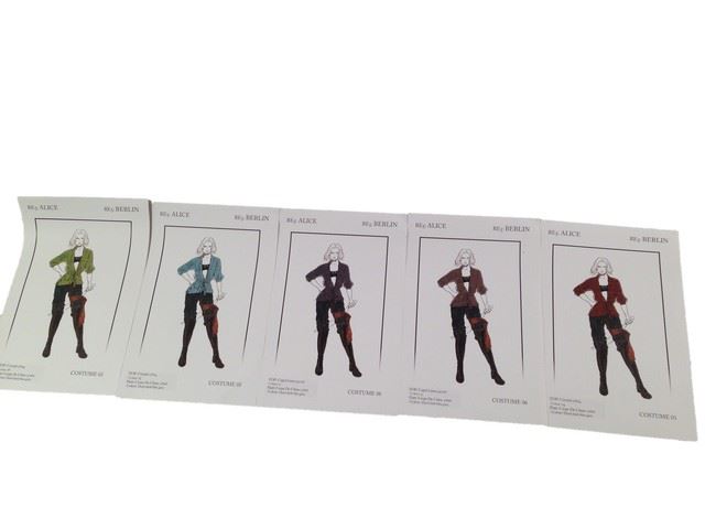 Resident Evil: Retribution - 5 photo renderings of Alice (Milla Jovovich) with variations in the color of the jacket to help aid the wardrobe design team in determining the final costume design. (Approx. 11" x 16.5")