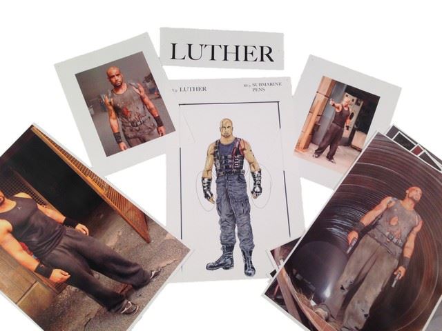 Resident Evil: Retribution - A collection of Luther's (Boris Kodjoe) costume renderings and printed photos from the wardrobe department design team files. (Approx. 11" x 16.5" & 11" x 8.5")