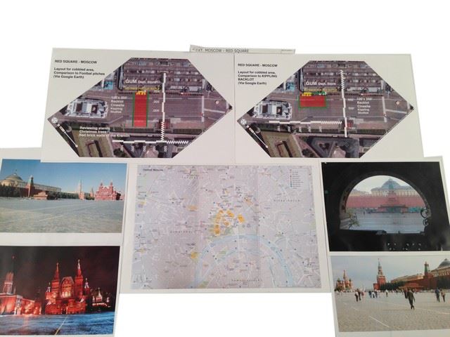 Resident Evil: Retribution Moscow Red Square map/layout via Google Earth and map photos (2 pages 17" x11") with 4 inspiration color copied photos (8 1/2" x 11")
