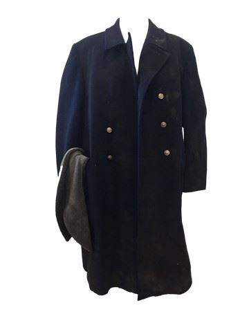 Screen worn, Russian Undead military knee length overcoat, heavily distressed and soiled, with fur collar that is removable.