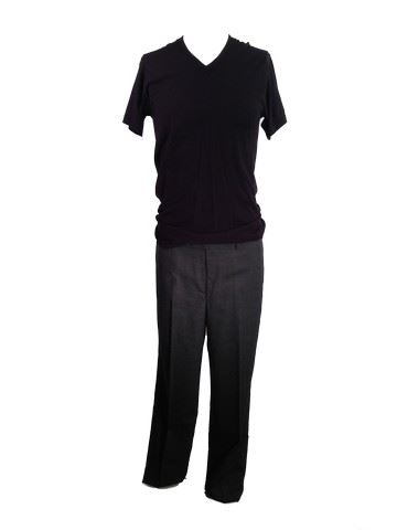 Todd (Oded Fehr) screen worn, stunt, "Jones New York" dark grey dress pants(38) paired with a black "Standfields" v-neck t-shirt(M).