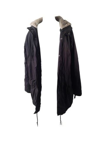 Tony (Robin Kasyanov) screen used, hero, black zip up "Divided" hoodie with buttons, wool hood, drawstrings, pockets, and chest pockets, "#10 Tony" written inside hoodie. Pair of black suede paneled fingerless gloves with velcro, "10 Tony" written inside.