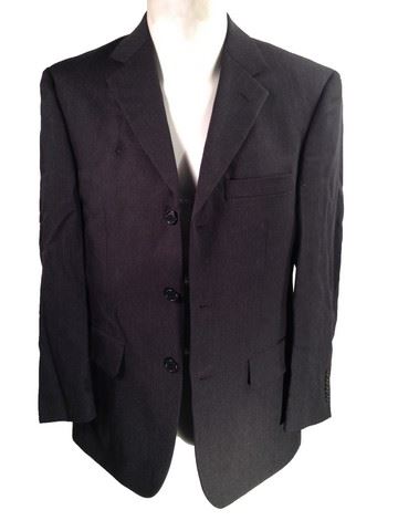 Undead (Phillip Chang) screen worn, production distressed, charcoal black suit coat with tears on the front and inside. Seen suddenly coming to life in a deserted intersection in Resident Evil: Retribution.
