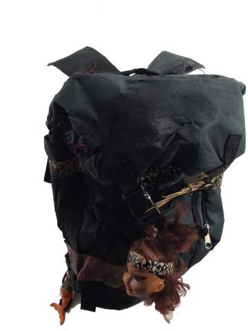 Abigail (Ruby Rose) screen used, double, green back pack (lightly soiled with blood) with doll head and doll mermaid body attached. (Approx. 13.5" x 8")
