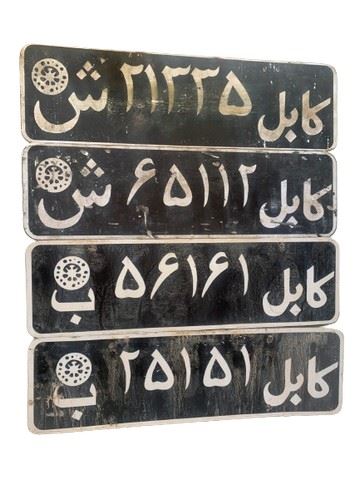 Four screen used, Afghanistan bus and civilian license plates. Made of metal/aluminum.