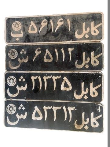 Lot of 4 screen used, Afghanistan civilian 1970s replica license plates. made of metal.