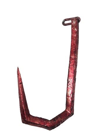 Alice's (Milla Jovovich) stunt, distressed and bloody, rubber hook with plastic single chain link. (Hook is approx. 12" x 5")