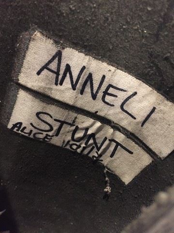 Alice's (Milla Jovovich) screen worn stunt, black laceup knee boots, zip up in the back, labeled "Alice stunt Anneli".