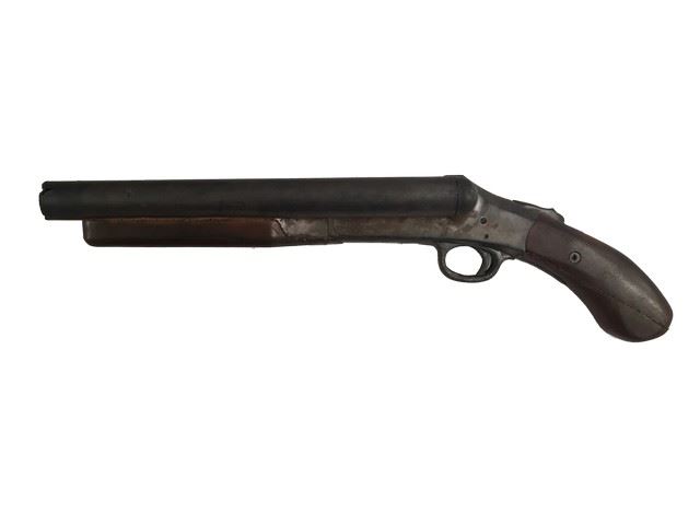 Alice's (Milla Jovovich) screen used, hero, hydra foam gun with dark brown foam and "STANDARD HARRINGTON & RICHARDSON WORCESTER, MASS. U.S.A." engraving-broken cocking mechanism. (approx. 18" x 3 1/2" barrel)