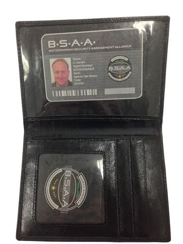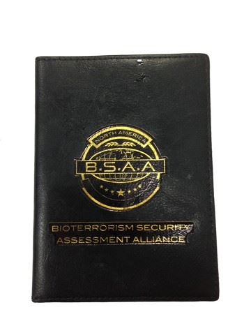Screen used B.S.A.A. (Bioterrorism Security Assessment Alliance) badge case with printed ID badge for G. Darren, Agent Number and Rank on the inside and B.S.A.A ID card. (Approx. 6"x4")