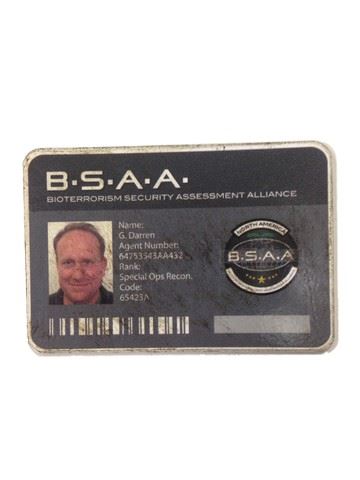 Screen used B.S.A.A. (Bioterrorism Security Assessment Alliance) ID Card. Name printed: G. Darren with Agent Number and Rank. (Approx. 4"x2.5")
