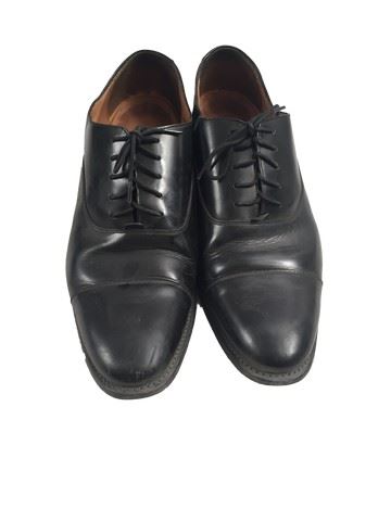 Dr. Isaacs (Iain Glen) screen worn, prime level 1 hero costume. Includes a black 'Carducci' long sleeved dress shirt (size 41), dark grey 'Caruso' tie, black suspenders, black 'Caruso' suit jacket , black vest eggplant purple 'BEMBERG" fabric lining and cuff links with 'Umbrella Corporation' logo, two small sheets of logo stickers. 'Trenery' black dress shoes (size 43). Includes wardrobe tag.