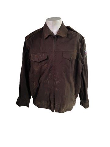 Gunner (Danny Lima) screen worn, production distressed, green zip up shirt with stains. Seen in Moscow pursuit in Resident Evil: Retribution.