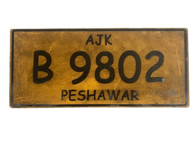 Pakistan ( AJK/Peshawar), screen used, production distressed license plate. "ND Pakistan vehicle" written on most of the back side.