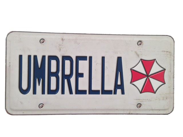 Resident Evil: The Final Chapter - screen used Umbrella Corp with logo plastic license plate. (Approx. 12" x 6") Item may slightly vary from picture.