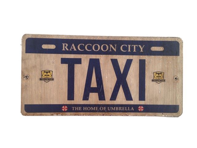 Resident Evil: The Final Chapter - screen used, production distressed, Raccoon City Taxi plastic license plate. (Approx. 12" x 6")