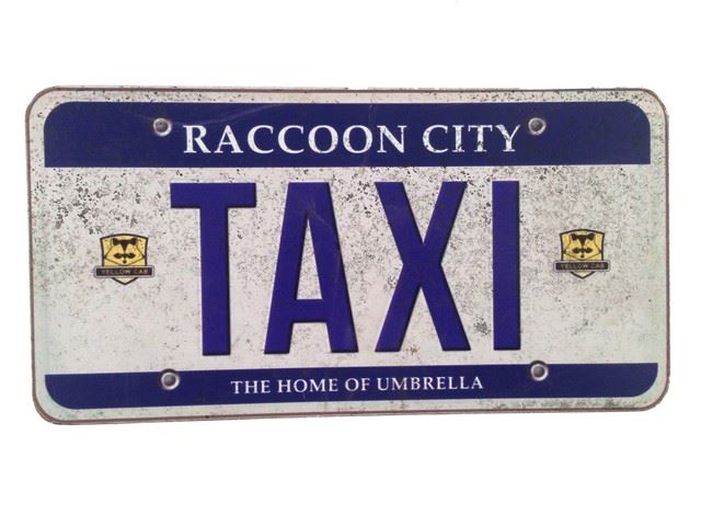 Resident Evil: The Final Chapter - screen used, production distressed, Raccoon City Taxi plastic license plate. (Approx. 12" x 6")