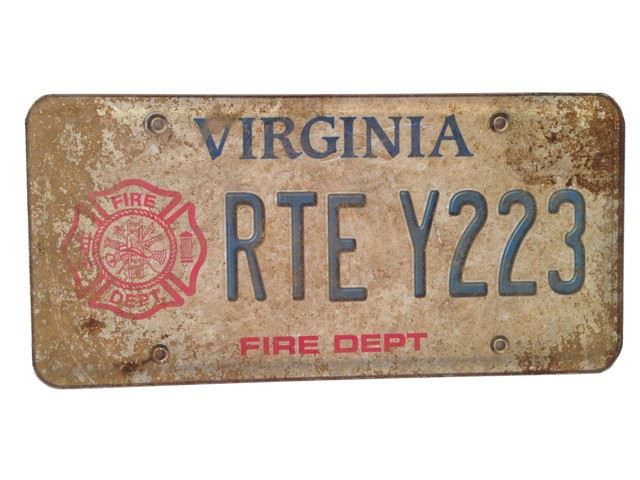 Resident Evil: The Final Chapter - screen used, production distressed, Virginia Fire Department plastic license plate. (Approx. 12" x 6")